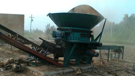 其主要是靠沖擊能來完成破碎生物作業(yè)的。錘式樹墩破碎機(jī)工作時,電機(jī)帶動轉(zhuǎn)子作高速旋轉(zhuǎn),生物均勻的進(jìn)入樹墩破碎機(jī)腔中,高速回轉(zhuǎn)的錘頭沖擊、剪切撕裂生物致生物被破碎,同時生物自身的重力作用使生物從高速旋轉(zhuǎn)的錘頭沖向架體內(nèi)擋板、篩條,在轉(zhuǎn)子下部,設(shè)有篩板、粉碎生物中小于篩孔尺寸的粒級 通過篩板排出,大于篩孔尺寸的生物阻留在篩板上繼續(xù)受到錘子的打擊和研磨。