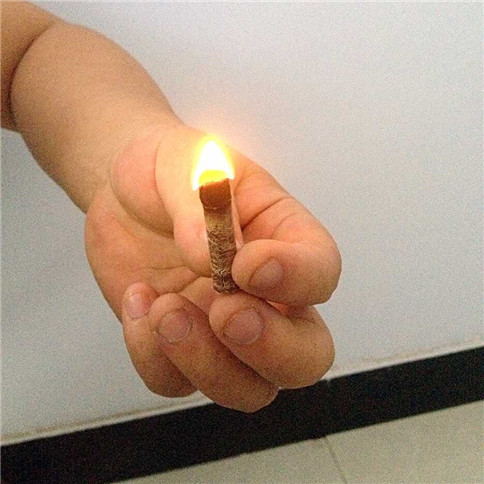 壓制成的顆粒,直接用打火機點燃↑