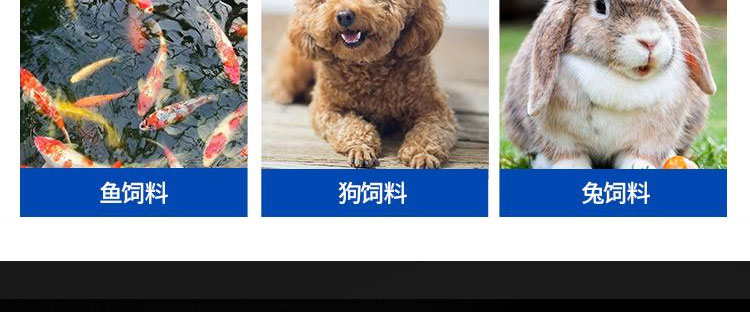 3、顆粒成分均勻,形狀整齊,顆粒粗細(xì)的孔徑可分為:Φ2、Φ2.5、Φ3、Φ3.5、Φ4、Φ5、Φ6、Φ7、Φ8等。用戶訂貨時(shí),可根據(jù)養(yǎng)殖動(dòng)物不同生長(zhǎng)時(shí)期需要選擇。